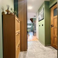 Przedpokój jest przestronny, bez wątpienia będzie to miejsce, gdzie nawet większa ilość gości komfortowo zdejmie okrycie wierzchnie i przejdzie dalej do salonu.